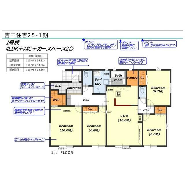 建物面積 | 110.96㎡ | 土地面積 | 実測 334.22㎡ |